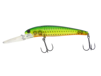 Hitfish TR Deep 115F este un vobler excelent pentru pescuitul la trena la adancime, special conceput pentru a atrage pestii pradatori mari, cum ar fi stiuca, salaul sau somnul. Aceasta masoara 11.5 cm si are forma de vobler minnow, cu o coada bine definita care imita miscarile naturale ale pestilor in apa. Adancimea maxima de scufundare poate atinge pana la 6.4 metri si chiar mai mult de atat, facandu-l ideal pentru zonele cu apa adanca (in special lacurile de munte foarte adanci cum ar fi: Lacul Izvorul Muntelui (Bicaz), Lacul Bezid, Lacul Colibita, Lacul Siriu, Lacul Firiza dar poate fi pescuit si pe rauri cu debit mai mare cu ar fi Dunarea, Olt, Mures, Siret sau Prut. Coada nalucii creeaza o vibratie puternica in apa, captand atentia pestilor aflati la distanta. Hitfish TR Deep este echipat cu ancore de calitate superioara (made in Japan), asigurand o prindere ferma si eficienta. Datorita designului sau robust si al actiunii realiste, acest model este alegerea perfecta pentru pescarii care doresc sa aiba succes in capturarea pradatorilor de dimensiuni mari.