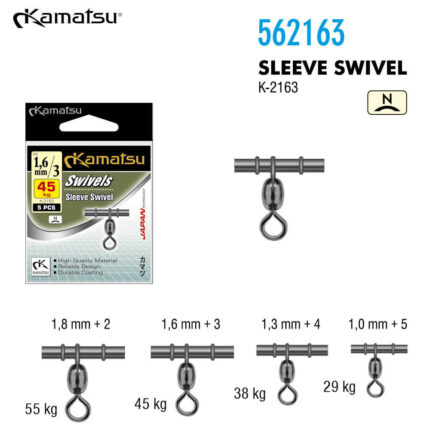 Kamatsu Sleeve Swivel K-2163 este un vartej culisant de inalta calitate, proiectat pentru a oferi o rotire lina si o rezistenta superioara in timpul pescuitului. Datorita designului sau cu manson, acest vartej minimizeaza incurcaturile liniei si asigura o conectare sigura intre fir si montura. Fabricat din materiale rezistente la coroziune, Kamatsu Sleeve Swivel K-2163 este ideal pentru utilizarea in ape dulci si sarate, oferind o durabilitate excelenta si performanta fiabila in toate conditiile de pescuit.