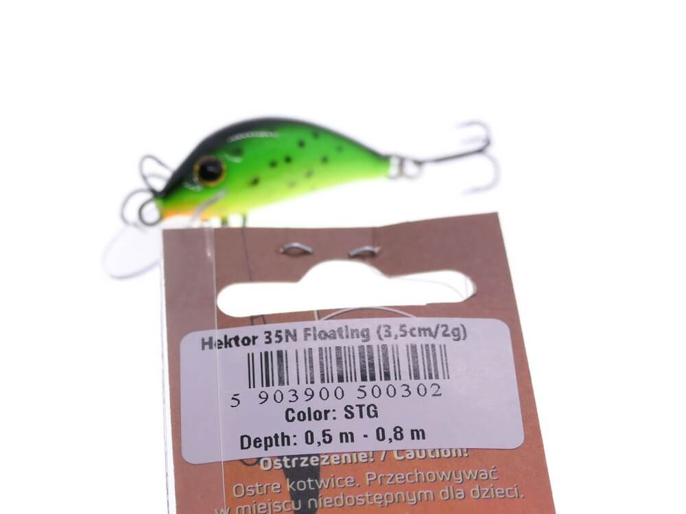 Hektor 3.5cm este un vobler excelent pentru pescuitul cleanului, bibanului si al pastravului pe rauri mici sau medii. Fiind un vobler care evolueaza pana in 0.5-0.8m este un ideal pentru pescuitul pe rauri, dar poate fi pescuit si pe lacuri atunci cand rapitorii se hranesc la suprafata (cum ar fi cleanul). De foarte multe ori atacurile vor surveni in momentul cand oprim voblerul din recuperare, atunci cand acesta va urca spre suprafata si este indicat ca aceste stopaje sa le facem in apropierea structurilor. Acest model este disponibil in peste 40 variante de culori , ideale pentru toate speciile de rapitori din tara noastra.