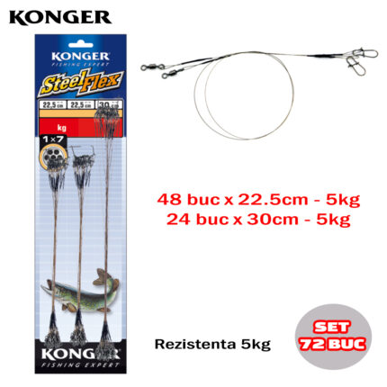 Konger set 72 strune rapitori SteelFlex 1×7, 22.5cm si 30cm, 5kg