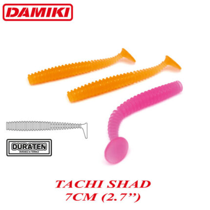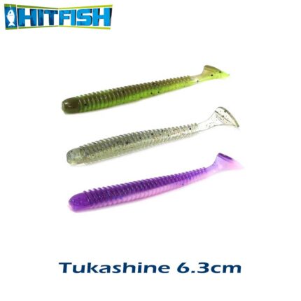 Modelul Tukashine se fabrica in doua marimi : 6.3CM (2.5'') si 8.9CM (3.5''). Forma nalucii este de vibrotail cu un crop nervurat, care va creea zgomot suplimentar in apa, atragand astfel atentia pradatorilor. Aceasta naluca are un corp aplatizat, ingust, care creste in mod vizibil volumul, in timp ce momeala ramane mai degraba subtire, iar coada ce este uniforma si foarte naturala va atrage atentia prodatorilor si ii va provoca sa atace. Partea inferioara a nalucii este facuta astfel incat sa creeze o vibratie puternica si zgomot, iar in combinatie cu un joc al cozii cat mai natural , aceasta va crea toate conditiile necesare pentru a avea atacuri.