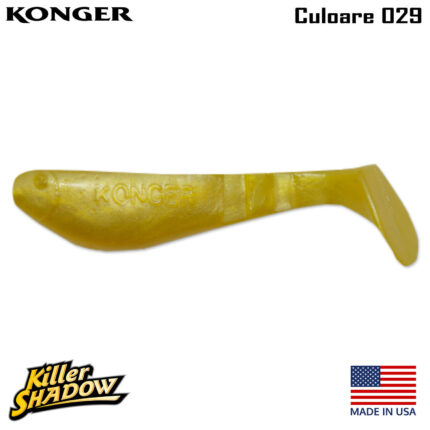 Una dintre cele mai populare naluci soft din lume care imita natural un peste prada. Shadul se ingusteaza la tranzitia dintre corp si coada prin striatii, care confera corpului si cozii o miscare mare. In schimb, acesta este foarte rezistent la dintii ascutiti a pradatorilor si la alte obstacole din apa. Cu modelul Killer Shadow , firma Konger a reusit sa combine simbioza perfecta a compusului din silicon, moblitate si putere de captare. Forma sa realista il face sa fie shadul perfect pentru orice specie de rapitor : biban, stiuca, salau, somn. Compusul din silicon moale, dar robust, asigura o mobilitate incredibila si irita pradatorii aflati chiar si la distanta mare. Datorita naturii sale sedative, datorita constructiei sale, flanseaza seducator in campul vizual al pradatorului pentru o lunga perioada de timp si il poate irita pana la extrem. Marimea de 11cm este ideala pentru pescuitul rapitorilor de talie mare : stiuca, salau sau somn. Nalucile sunt fabricate in USA.
