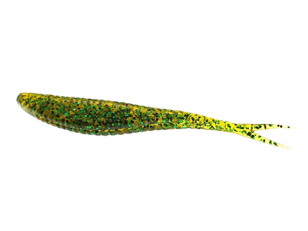 Una dintre cele mai bune naluci soft pentru pescuitul cu metoda drop-shot atunci cand sunteti in cautarea exemplarelor mari de biban, bass, salau sau stiuca. O naluca ce aduce rezultate atunci cand pestii nu sunt activi sau in perioada de iarna.In partea de sus este prevazuta cu un canal unde putem ascunde varful carligului offset fara a fi expus iar in partea anterioara are un canal adanc ce faciliteaza armare carligului foarte usor. Partea de legatura a cozii, care devine mai subtire rapid in corp, este impartita in doua (coada de randunica), creand o actiune naturala cu vibratii mici. Poate fi pescuit si cu un offset nelestat si actioneaza ca un jerkbait soft.