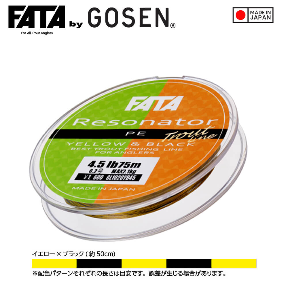 Cu proiectul FATA Resonator, Gosen si-a demonstrat de ceva vreme calitatile extraordinare de productie si in lumea pescuitului la pastrav, cu un fir textil fabricat din fibre PE in diametre si sarcini de rupere specifice acestei tehnici. Modelul Resonatr PE este un fir textil impletit in 4, cu o structura moale si matasoasa ce permite lansari foarte lungi si are elongatie zero. Impletitura din fibre IZANAS se remarca imediat pe mulineta datorita variantei cromatice din care este compusa: de fapt, la fiecare 50cm segmentul galben este intercalat cu un segment negru de lungime egala. Combinatia celor doua culori permite o vizibilitate perfecta in apa a firului, in toate conditiile de lumina. Un fir ce este recomandat in pescuitul pastravului fie ca e vorba de pescuit pe rau, lac sau trout area. Este disponibil in role de 75m in diametre foarte subtiri ce sunt recomandate in pescuitul extra ultra light sau ultra light.