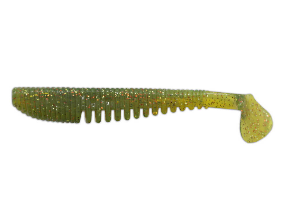 Modelul Ribby Shad 10.1cm a fost proiectat astfel incat sa creeze cat mai mult zgomot in apa, provocand atacul pradatorului. Are un corp sub forma unui “acordeon”, ceea ce ii confera un efect de ondulare in apa si o coada de shad. Corpul spiralat al shadului il face deosebit de flexibila si de aceea inteparea este foarte eficienta. Aceasta naluca se preteaza foarte bine in pescuitul cu carlige offset, consistenta materialului permite iesirea facila a varfului carligului in momentul muscaturii si implicit inteparea pestelui.