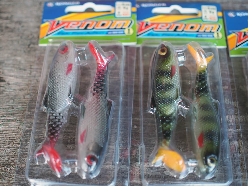 Konger Venom shad are un corp gros, o comanda mare si un design realizat pana la cel mai mici detaliu fapt ce il fac sa imite foarte bine un peste viu. Uneori doar aspectul si actiuniea nalucii nu este suficienta, asa ca factorul de atragere suplimentar al acestui model este atractantul, din acest motiv, daca pestele nu observa imediat “captura”, mirosul natural poate atrage pradatorul de la o distanta mai mare. Atentia mare acordata productiei se traduce printr-o actiune foarte realista a nalucii, foarte apreciata de pestele rapitori care a reactionat cu numeroase atacuri in primele zile de testare. Venom Shad este disponibil intr-o gama larga de culori (naturale, fluo, inchise) ideale pentru orice anotimp sau tip de apa.