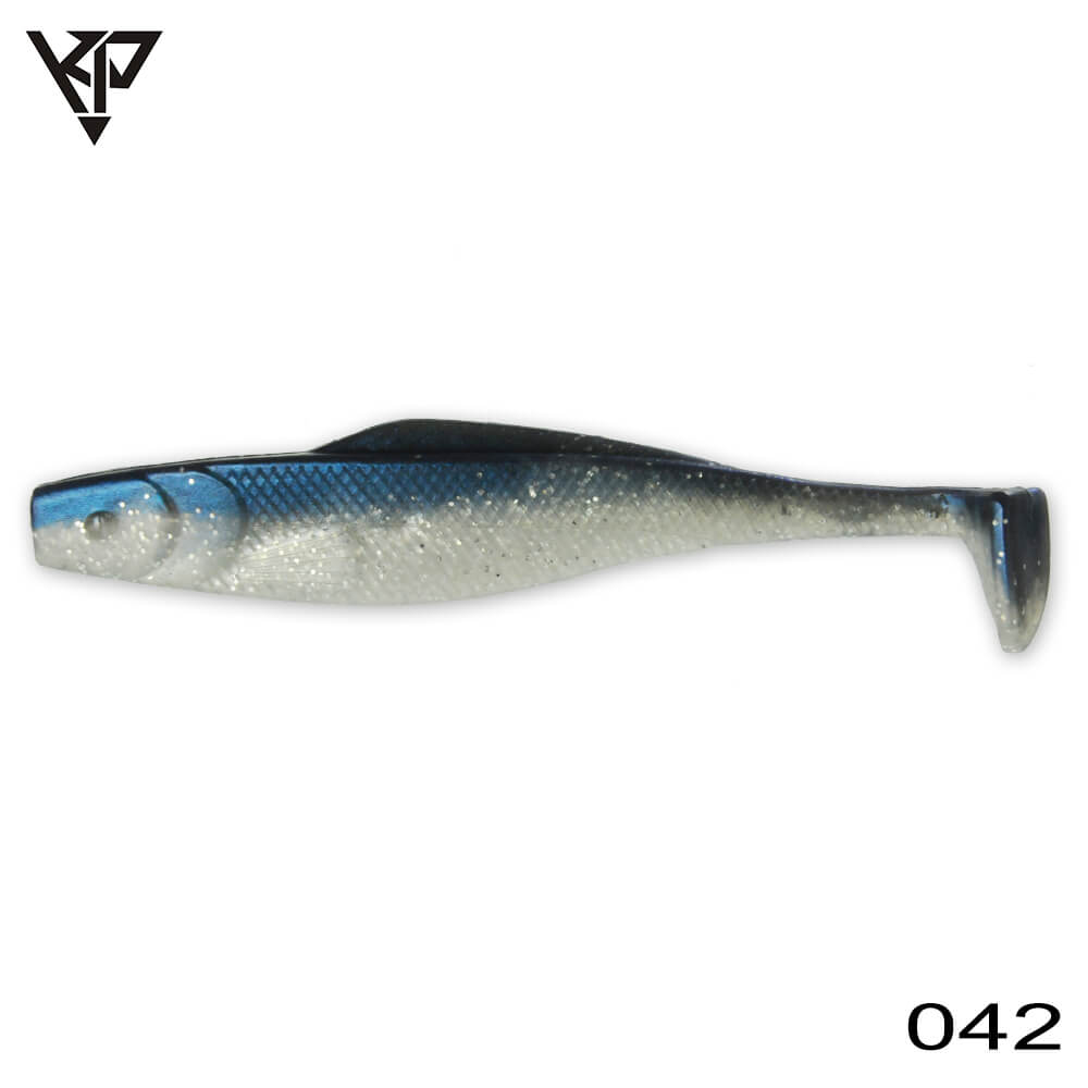 A slim high profile shad. Action is side-flashing and tail-wobbling, and the 90 degree tail angle creates a tempting movement even in slow retrieves. Dashing finishing and top quality silicone will guarantee your success. Best hooking and action is achieved by using size 2/0 hooks. Has given great results also in drop shotting.