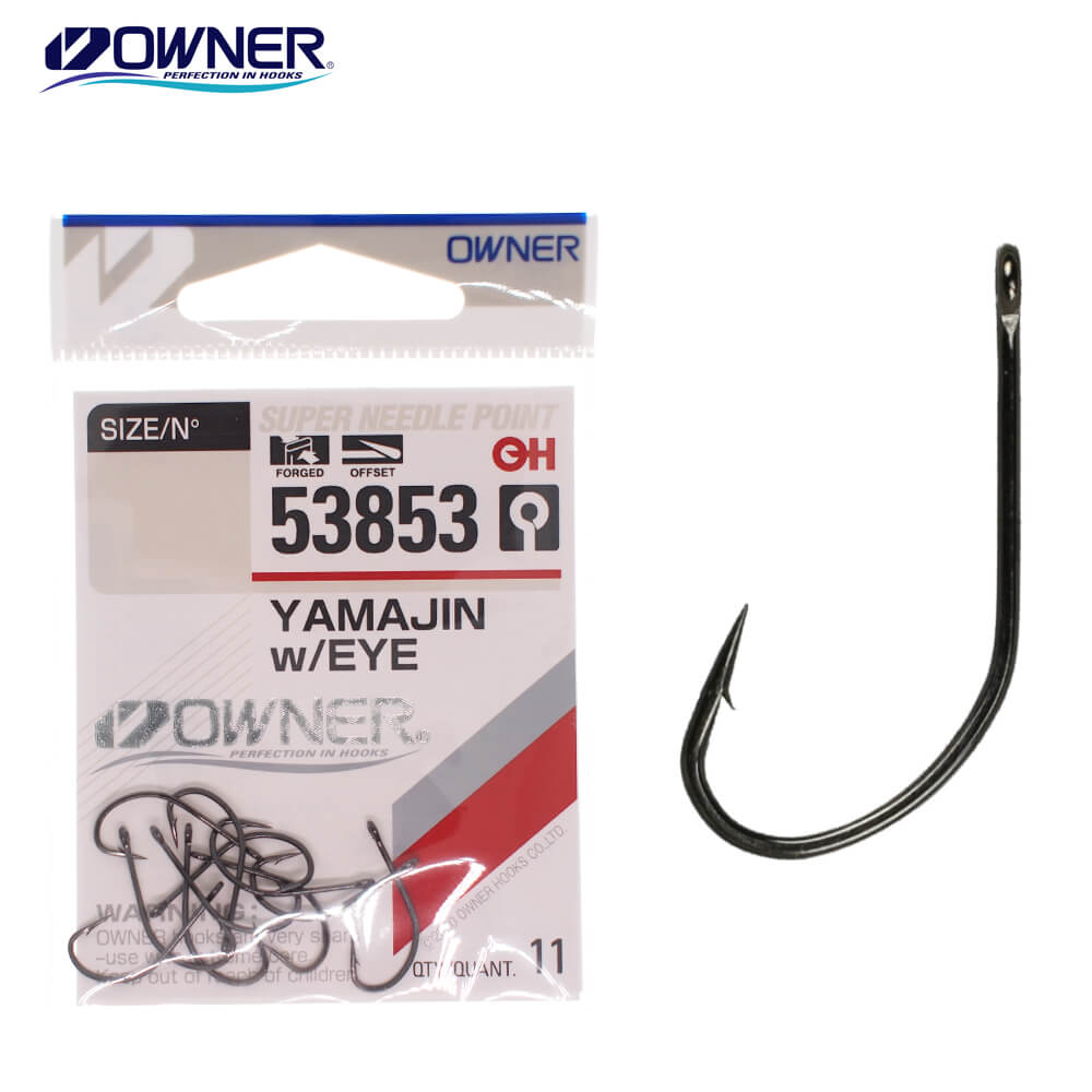 Carlige forjate cu inel, disponibile intr-o gama larga de dimensiuni. Varf drept, usor inclinat lateral, tija de lungime medie si curbura voluminoasa: Owner Yamajin cu ochet, serie 53853 este conceput pentru a intepa instantaneu pestele in timpul muscaturii. Varful este ascutit cu cea mai fina tehnologie “Super Needle Point”. Aceste carlige ofera o capacitate excelenta de intepare si penetrare, patrunzand usor in tesuturile gurii pestelui chiar si la distante mari de pescuit. Gama variata de dimensiuni a modelului permite alegerea ideala a carligului pentru pescuitul atat al pestilor mici, cat si al celor de trofeu. Recomandate pentru stiuca si salau in monturi cu momeli moarte iar datorita diametrul subtire al materialului permite utilizarea discreta cu momeli vii si naturale. Compatibile cu o varietate larga de momeli, exceptand cele mai delicate, datorita firului rezistent din care sunt fabricate, carligele ispun de o rezerva semnificativa de durabilitate. Dimensiunile mici reprezinta o optiune excelenta pentru pescuitul la crap folosind metoda Flat-Feeder. Acoperirea extrem de durabila Black Chrome™ permite utilizarea acestor carlige atat in apa sarata, cat si in apa dulce.