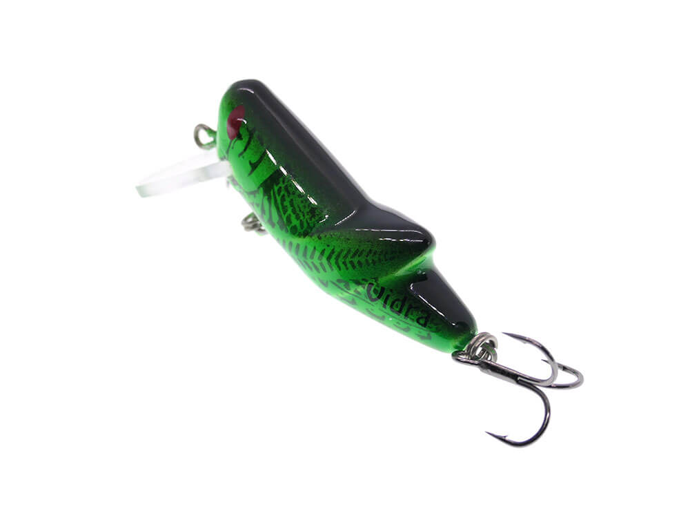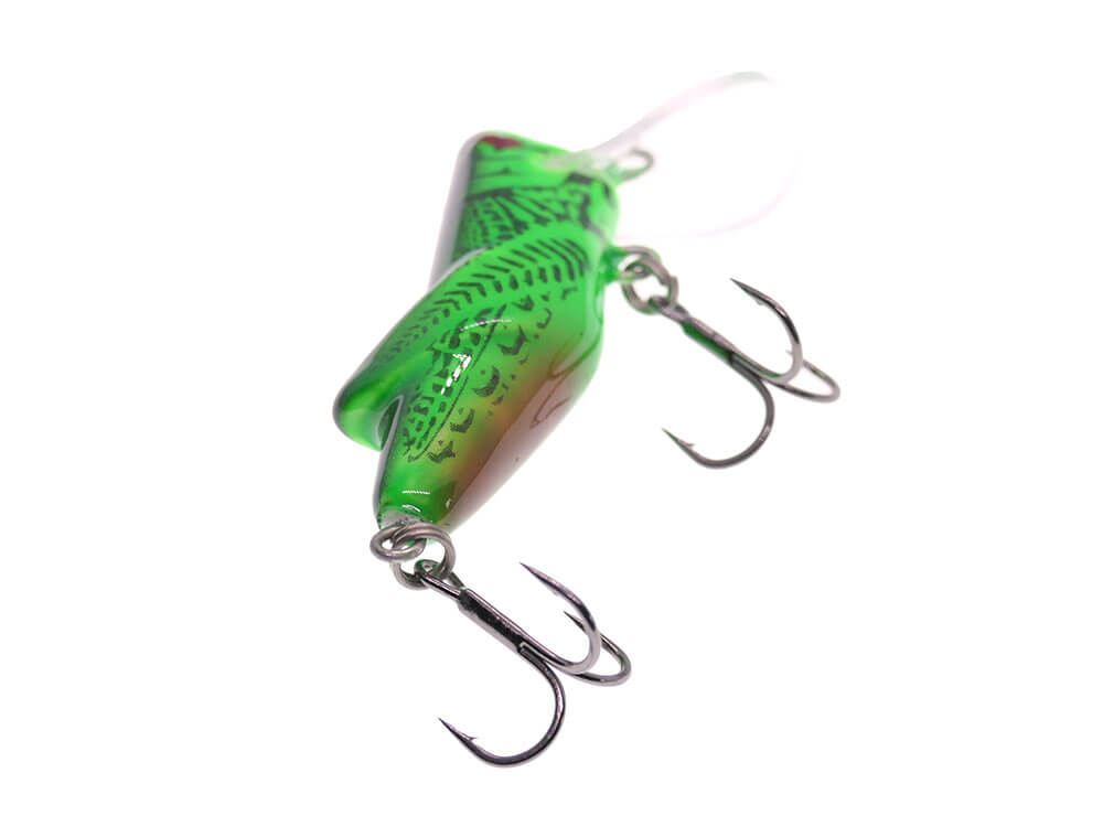 Floating wobbler VIdra – a perfect imitation of a grasshopper. As a preferred natural bait for many predatory fish species inhabiting the surface water layer, Vidra locusts are a must in the boxes of light spinning enthusiasts. The metal balls in the body give the necessary balance and at the same time contribute to increasing the attractiveness of the wobbler, emitting a rattling sound when moving. This grasshopper is designed to search for predators near the surface, and the draft of the bait is a maximum of 50 cm. It is characterized by very good flying and impressive casting accuracy. The wobblers are equipped with two reliable and sharp triples VMC number 10.